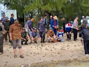 In addition to releasing the hatchlings, on this occasion the BKSDA Aceh and other partners also planted 100 Sea pine trees (Casuarina equisetifolia). The SatuCita Foundation is supported by Synchronicity and Houston Zoo.
