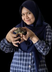 Maharani, S.Kel., M.Si. She is usually called Rani by her friends and colleagues. She was an undergraduate student in the Marine Department of Syah Kuala University in Banda Aceh. She has a deep interest in marine, mangrove, and wildlife conservation, especially turtles (including Painted Terrapin).
