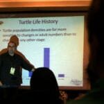 In the presentation, Joko explained the background of why the conservation of Painted terrapin (Batagur borneoensis) must be saved in Indonesia, what have been done to save this critically endangered species, the results have achieved and the challenges to be faced in the future, included the actions must be taken to reforest the habitat, riparian vegetations, mangroves that had been converted to oil palm and farming.