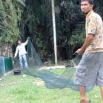 After the installation of stakes and concrete foundations, wire fencing, ponds repainting, cleaning the area from trash, planting crops in the areas around that have been implemented last week, now the activity will continue with painting fence stakes, installation of safety nets in all ponds, making plants and wood artificial to basking in the middle of the ponds, making nursery area to produce feed for Tuntong Laut (Batagur borneoensis). To maintain the cleanliness of water in ponds, the natural filtration has also been made.