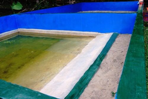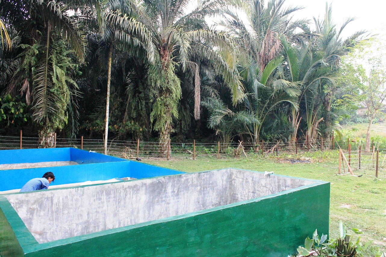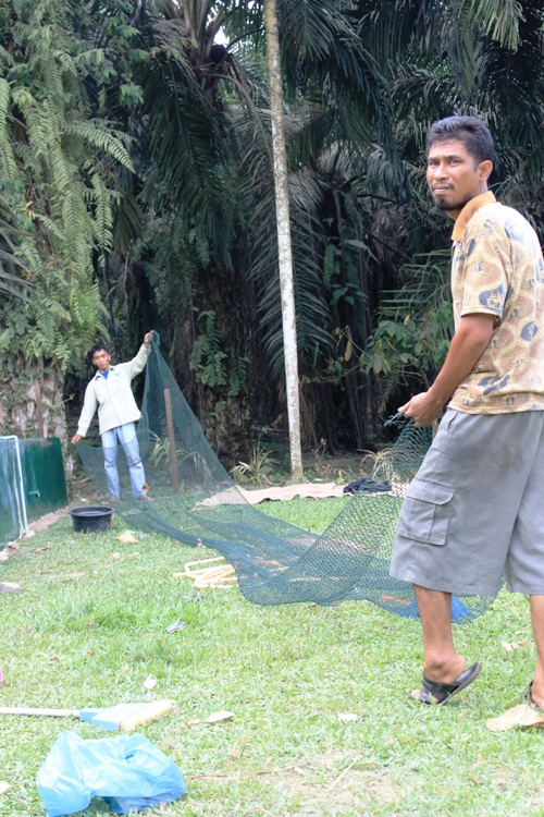 After the installation of stakes and concrete foundations, wire fencing, ponds repainting, cleaning the area from trash, planting crops in the areas around that have been implemented last week, now the activity will continue with painting fence stakes, installation of safety nets in all ponds, making plants and wood artificial to basking in the middle of the ponds, making nursery area to produce feed for Tuntong Laut (Batagur borneoensis). To maintain the cleanliness of water in ponds, the natural filtration has also been made.